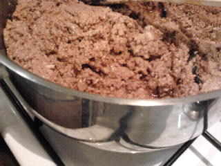 Pica-se a cebola e os alhos e aloura-se em azeite com o chouriço, o bacon. Junta-se a polpa de tomate e a carne e tempera-se com os condimentos. Depois junta-se o whiskey e a água, deixa-se evaporar o alcool destapado por 5 minutos. Tapa-se e deixa-se cozinhar até estar pronto e o molho apurado.