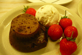 Deixar repousar uns minutos. Servir quente com uma bola de gelado e morangos ou framboesas frescas.
